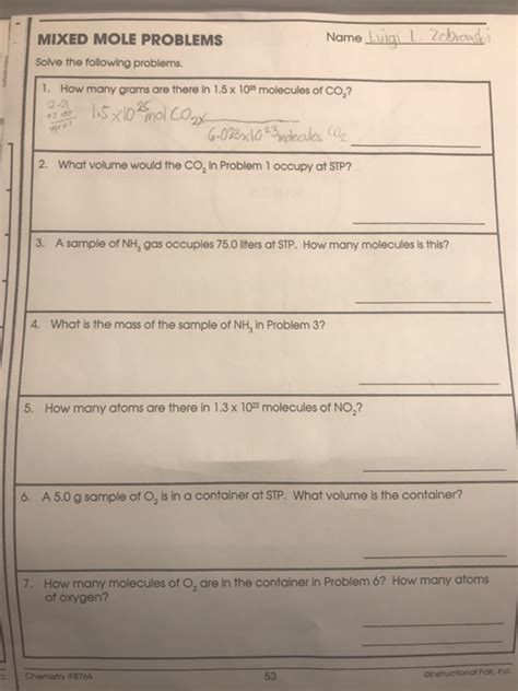 Web study with quizlet and memorize flashcards containing terms like 1. Mixed mole problems name solve the following problems. 1) how many grams are there in 1.5 x1025 molecules of co 2?