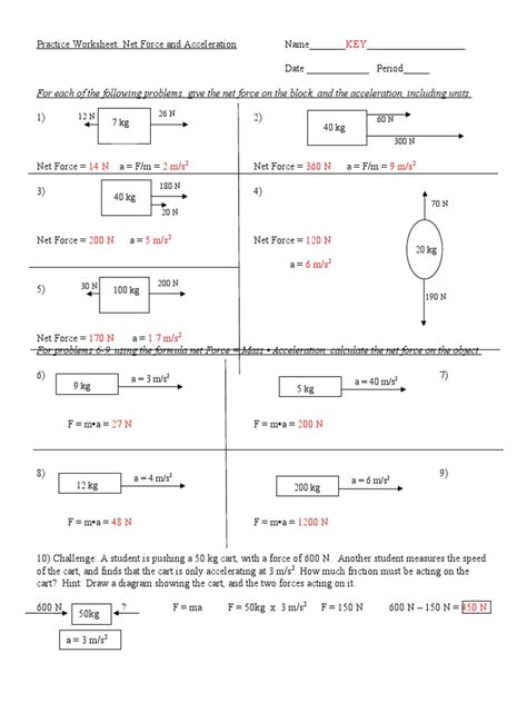 This form is used to determine the magnitude and direction of the net force. Some of the worksheets for this concept are practice work net forces and acceleration, force. Web physical science, motion and forces worksheets covering acceleration, mass and net force problems, balanced and unbalanced forces, newton's 2nd law of motion.