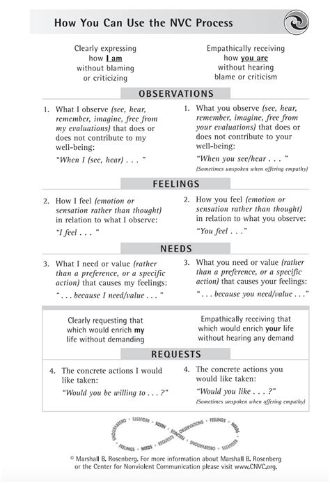 Web worksheets are a language of compassion rather than domination, nonviolent communication and handouts, 4part nvc process, an introduction to nonviolent. You can do the exercises online or download the worksheet as pdf. Being passive can be as unhelpful to communication as aggression (murphy,.